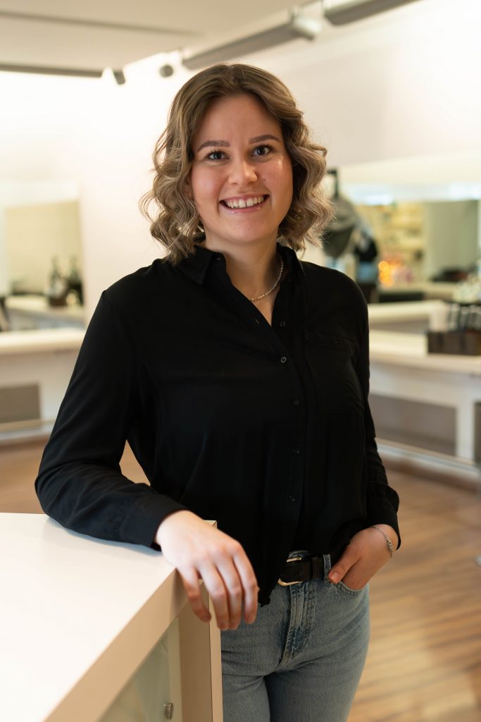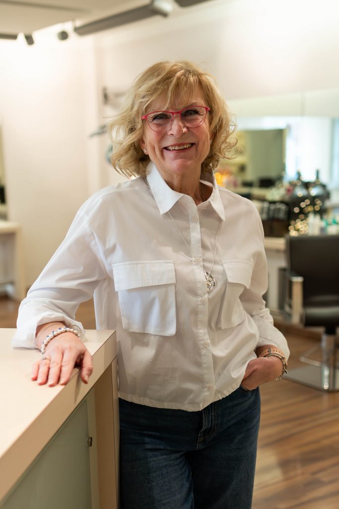 Unsere gute Seele im Salon! Seit 2018 lässt sie Dienstag und Mittwoch zu Hause alles liegen und unterstützt uns nachmittags beim Verschönern unsere Kunden. Bei unserer Hermine stehen Föhnfrisuren und Dauerwellentechniken hoch im Kurs.